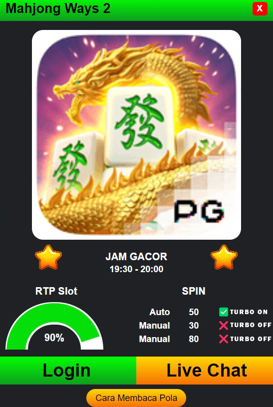 Pola ini adalah pola rekomendasi yang disediakan Awan303 untuk member setia Awan303 yang bingung saat hendak bermain. Namun, untuk kemenangan terbesar kembali kepada skill & keberuntungan masing-masing player. Player Awan303 juga bisa menggunakan pola bermain sendiri jika mempunyai pola yang dirasa lebih baik dari pola yang disediakan.